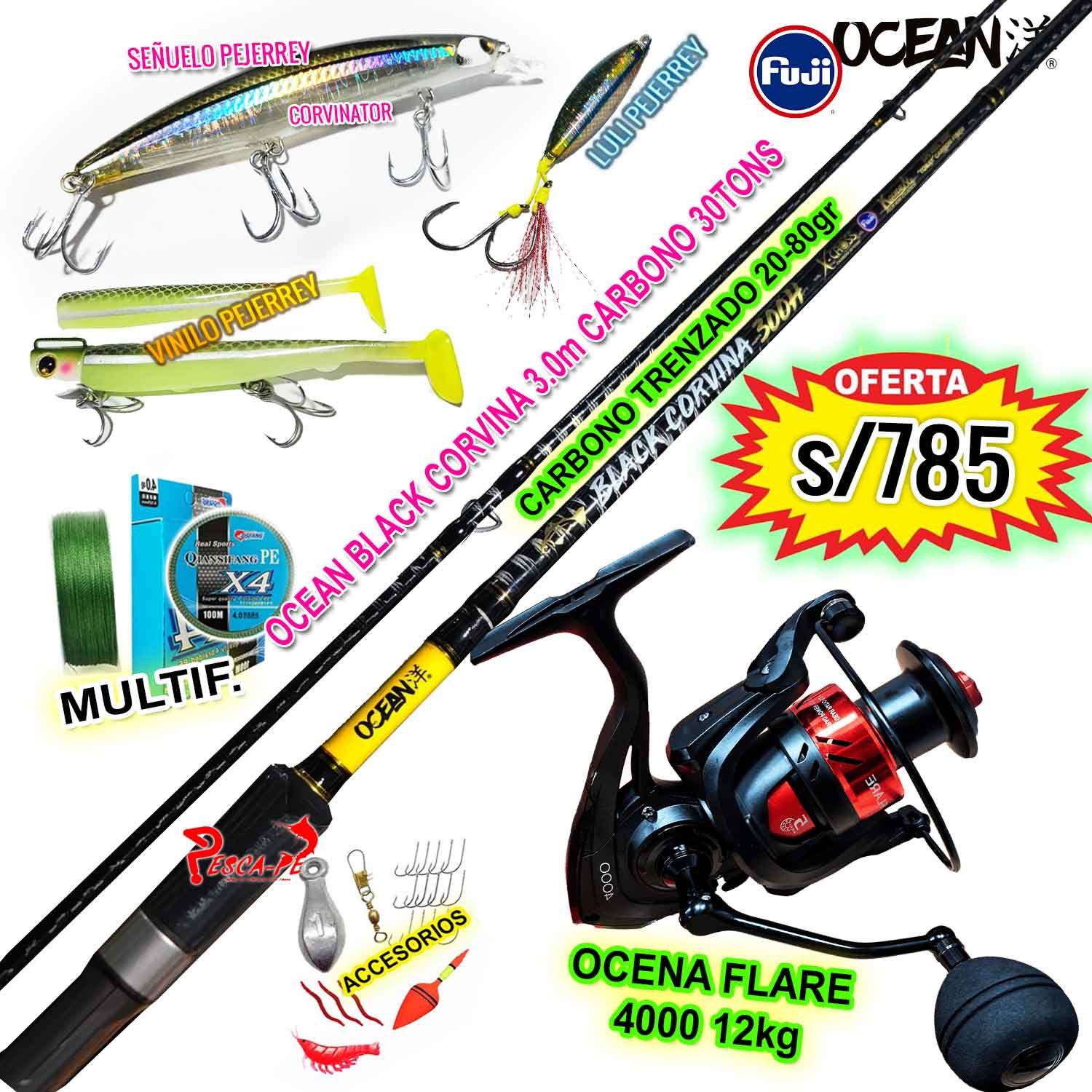 COMBO BLACK CORVINA 3.0m Ocean + Carrete OCEAN FLARE 4000 12kg FullPejerrey