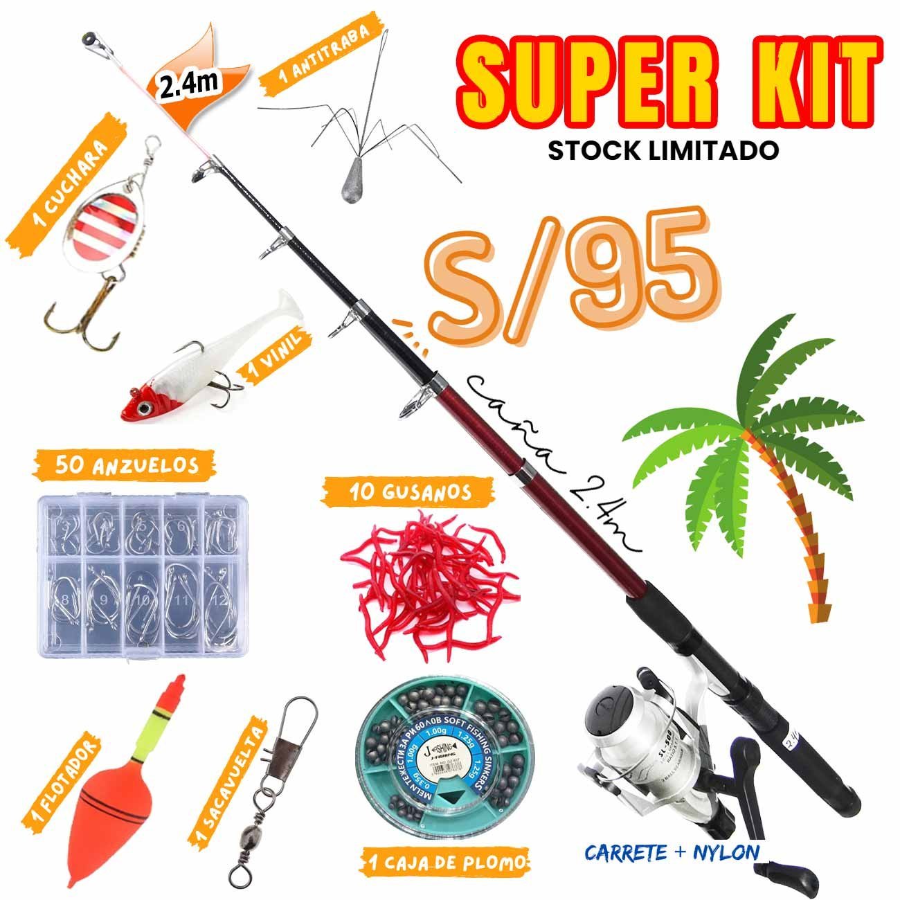 Les presentamos a este kit completo para pescar en peñas, muelles. Orillas, etc.  lo mejor que es portátil lo puedes llevar a cualquier lugar y puedes armar de manera fácil y divertida. En este kit tienes todo lo necesario para pescar Truchas, Chitas, tramboyos, pejerrey, mojarras, barbudos, etc. Puedes usar los gusanos artificiales o naturales ya que ambos tienen buenos resultados. Las cañas están fabricadas con fibra de vidrio y es resistente al momento de pique, en este kit incluye anzuelos y plomadas y puedes revisar en YouTube el tutorial para armar. Así que no pierdas la oportunidad de pescar compra ahora mismo este kit.