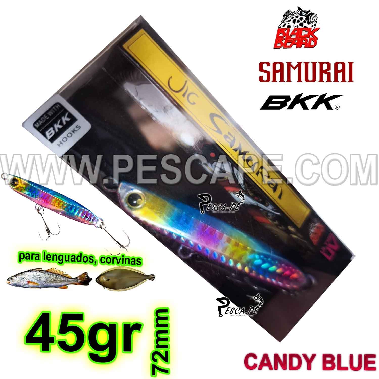 JIG SAMURAI 45g BKK UV 72mm EFECTIVO LENGUADOS CORVINAS CANDY BLUE