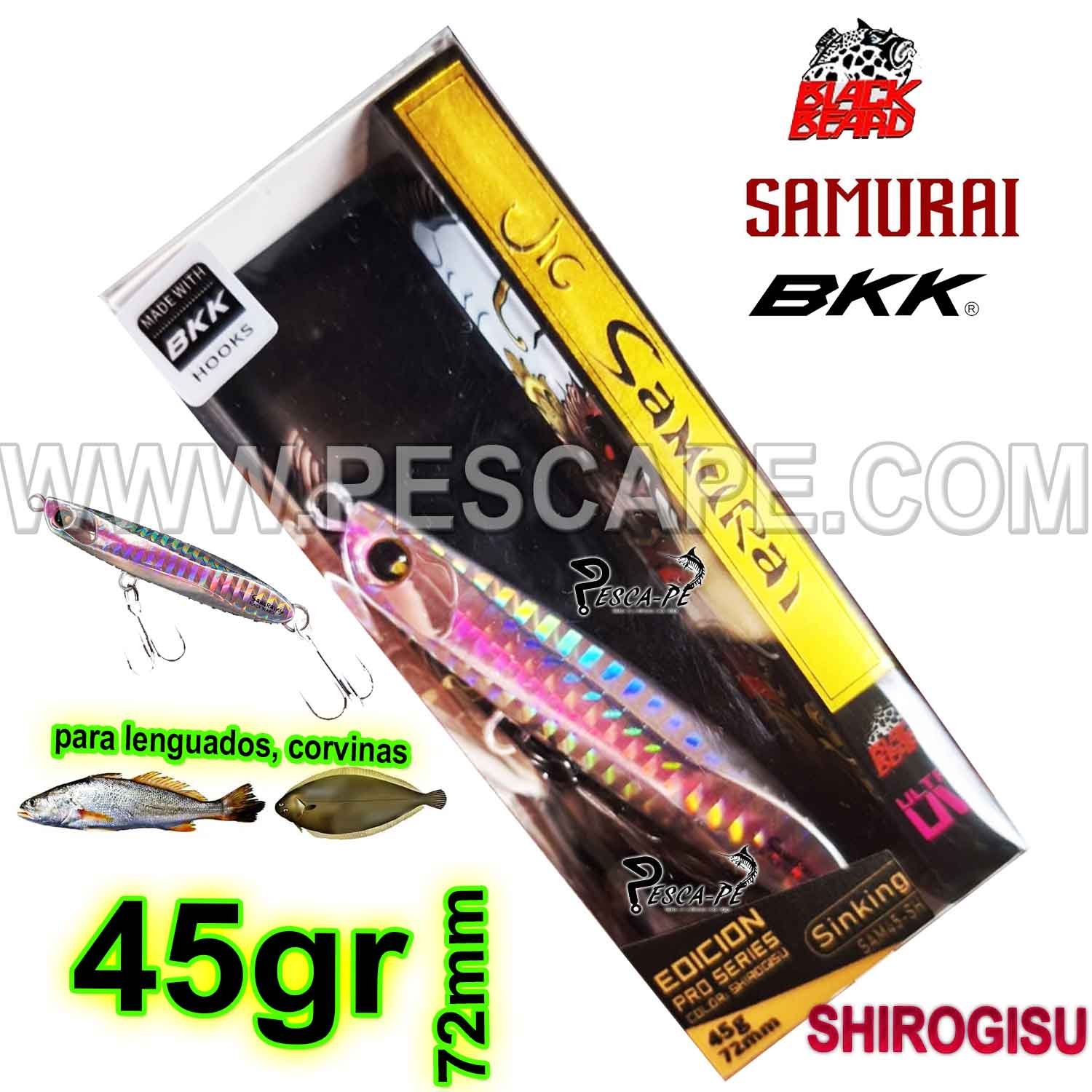 JIG SAMURAI 45g BKK UV 72mm EFECTIVO LENGUADOS CORVINAS SHIROGISU