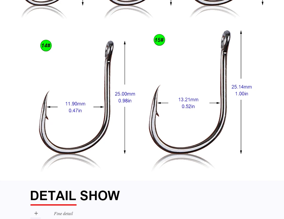 • 10 tamaños disponibles:Con 10 tamaños diferentes para elegir, puede encontrar el anzuelo perfecto para sus necesidades de pesca.