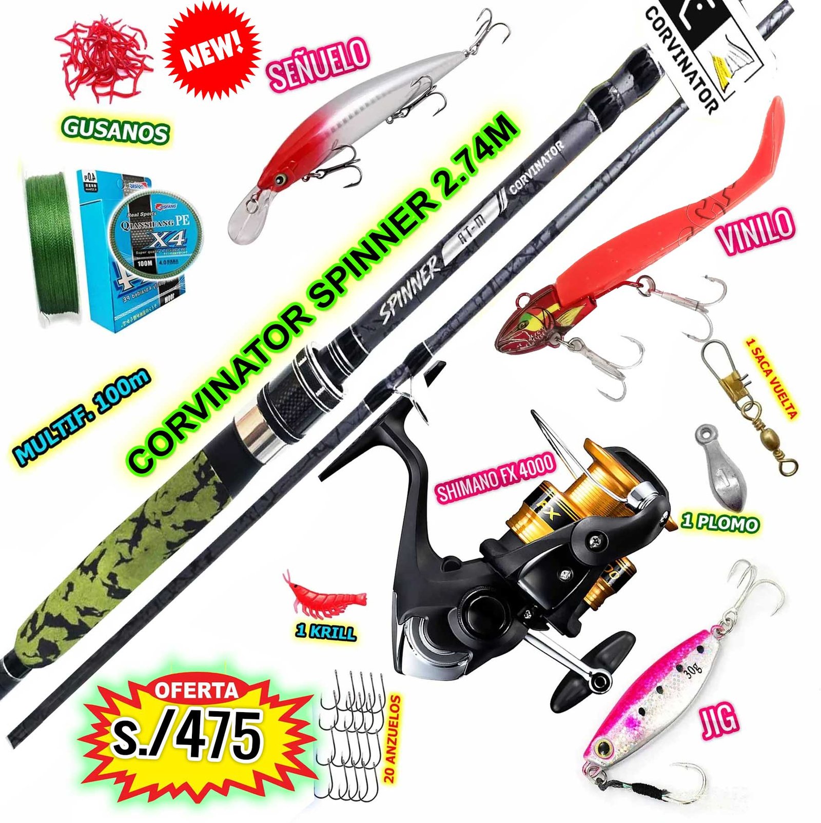 MegaCombo CAÑA CORVINATOR® SPINNER 2.74M CARBONO CARRETE SHIMANO® FX 4000 ACCESORIOS FXSPINNERKILLER