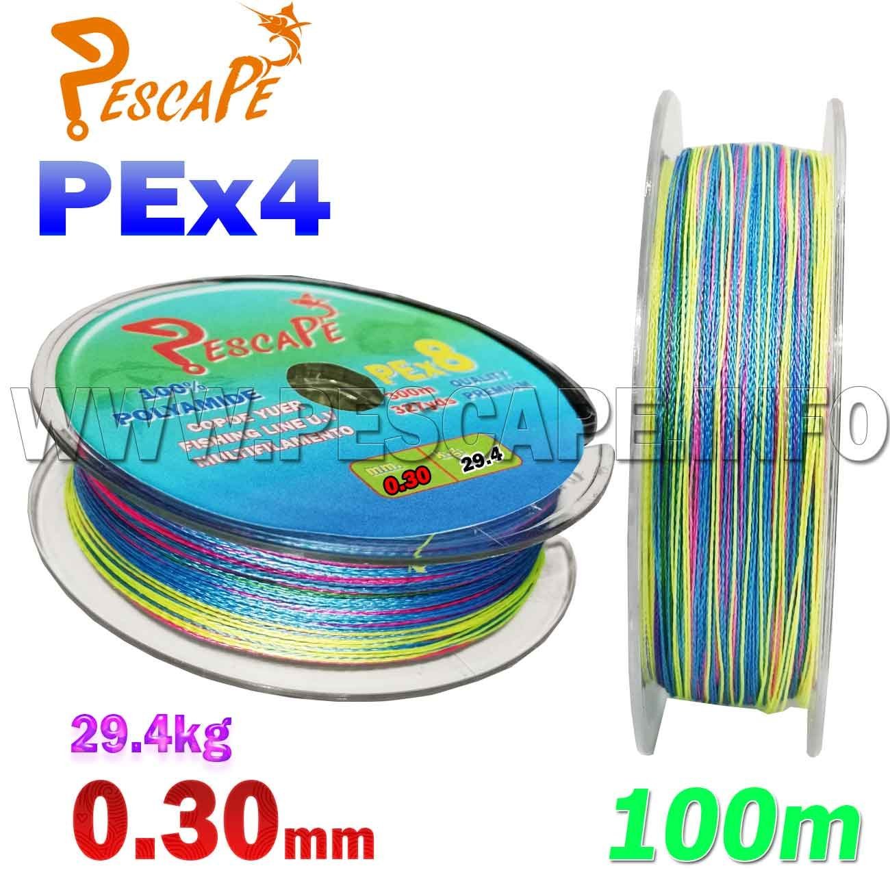 Sabías que pescar con multifilamentos es mucho mejor ya que trae cuatro hebras trenzados son hilos súper resistentes para la pesca en este caso les presentamos este multifilamento 0.30mm 100% Poliamide de cuatro hebras PE X4 resiste hasta 29.4kg es de un color múltiple es muy recomendado porque el multifilamento es más resistente y no se rompe fácilmente en sus jornada de pesca te va a ir bien compra este multifilamento de la marca pescape somos pescadores y recomendamos lo mejor para nuestros clientes es fácil de montar en cualquier carrete simplemente amarras y colocas en la guía de multifilamento y empiezas a embobinar compra este producto porque es muy recomendado viene 100 metros 100% resistente cuatro hebras y está hecho de buen material viene rollo
