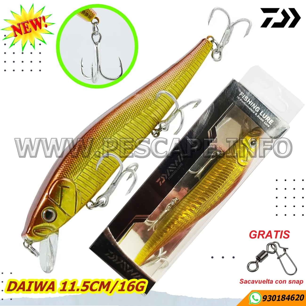 DAIWA-Señuelos de Pesca con manivela superior, Wobbler, Swimbait, aparejos de pesca, 3 anzuelos triples, cebo duro, accesorio de pesca, 11CM, 16G