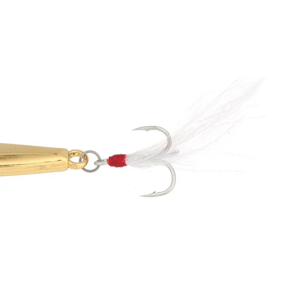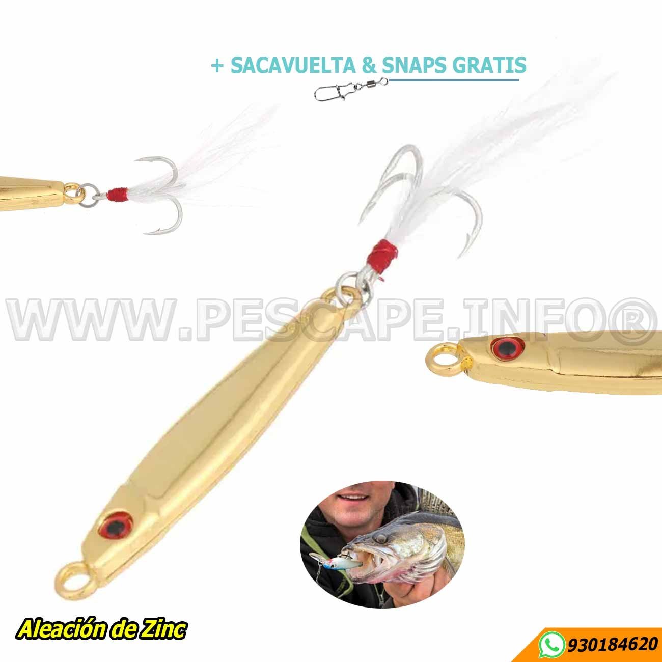 100% nuevo y de alta calidad. Forma aerodinámica, lanzamiento estable, posición precisa de entrada de agua. Fortalece los tres ganchos, la punta del gancho es afilada, la potencia de penetración es fuerte y no es fácil ejecutar el pez. Los Movimientos realistas y rápidos en el agua tienen buenos efectos especiales para atraer a los peces. Tanto la pesca marina como la pesca de agua dulce son adecuadas para lubina de agua dulce, zander, pomposo de agua dulce, Lucio, bagro, mandarina, etc. Especificaciones: Material: aleación de Zinc Color: oro, plata Peso: 7g, 10g, 14g, 20g El paquete incluye: 1 * Señuelos de Pesca