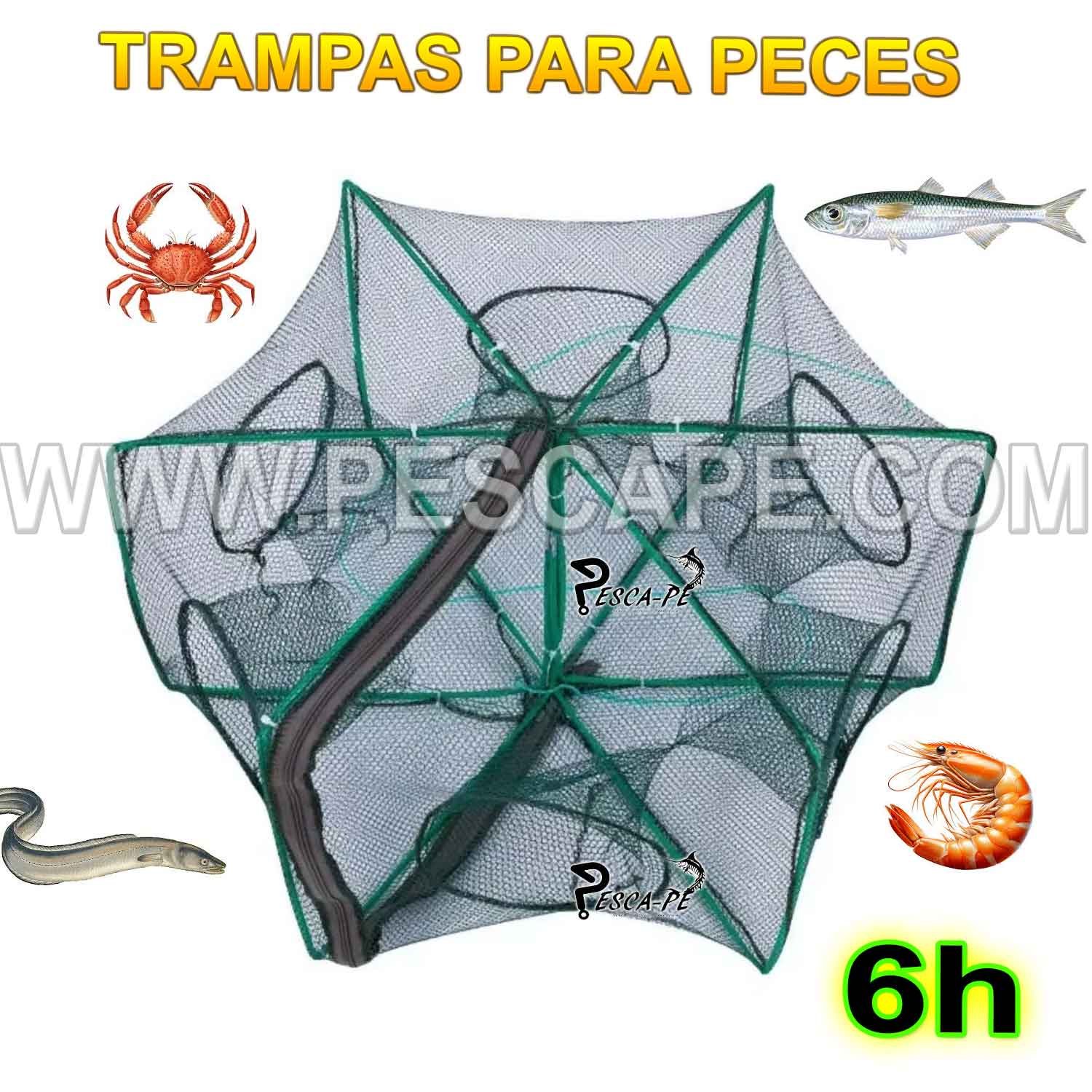 ✅ Uso VersátilAtrapa múltiples especies (camarones, cangrejos, anguilas, peces pequeños).